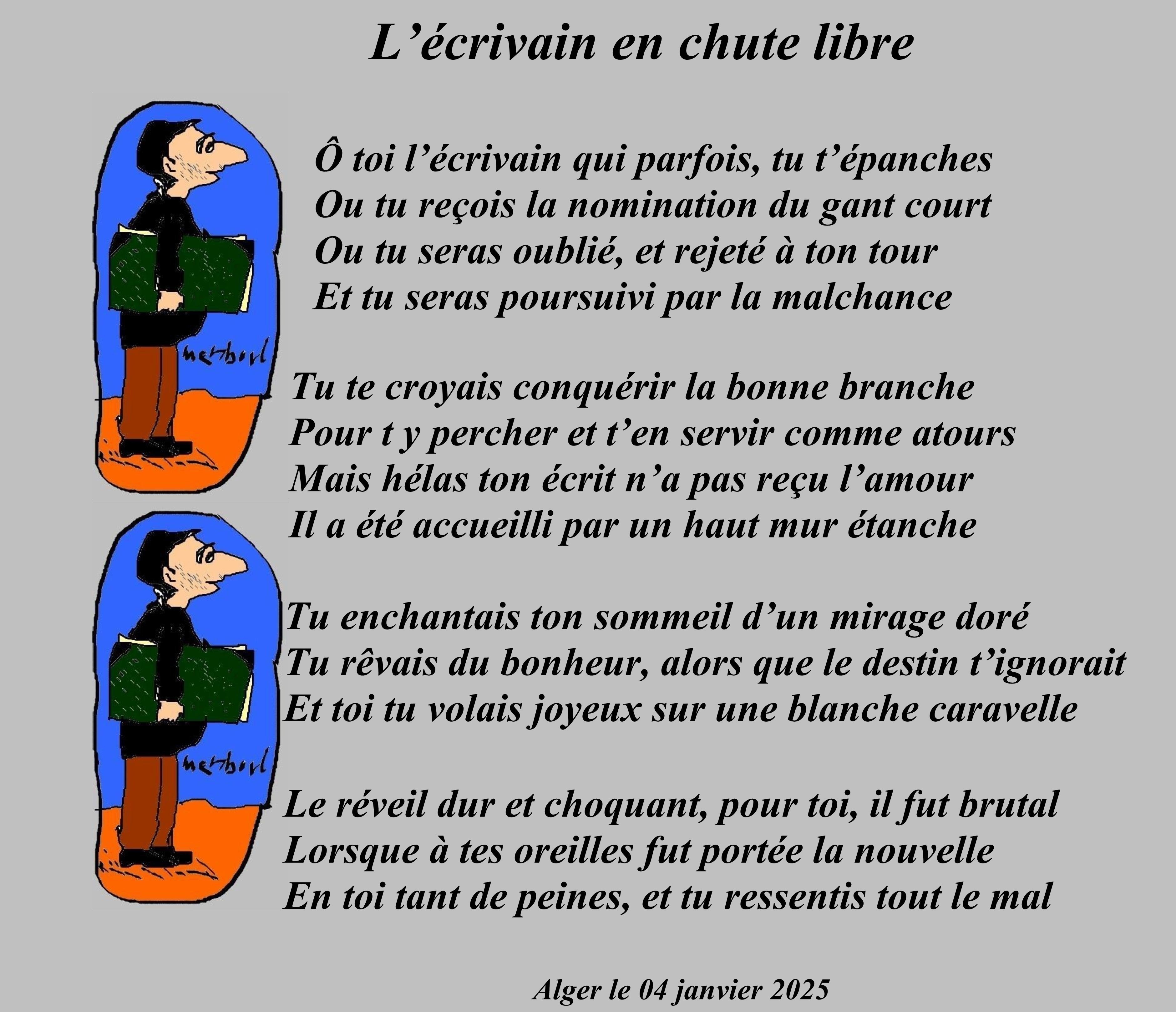 Un poème émouvant où vous nous dépeignez la grande déception éprouvée par l’écrivain dont les publications n’ont pas de succès. Mais l’important n’est pas de devenir célèbre mais plutôt d’exprimer notre ressenti intérieur par l’écriture