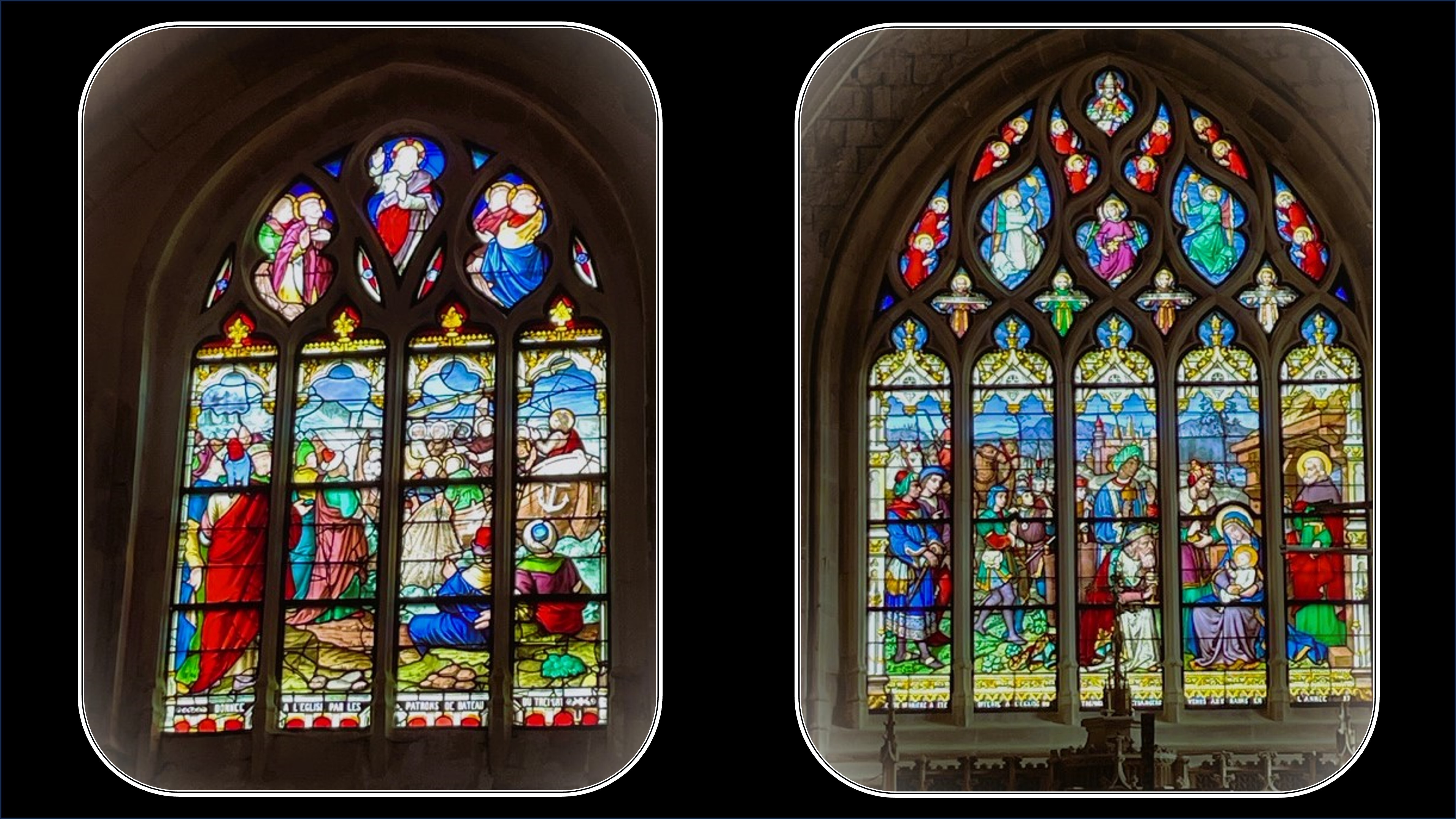 Ah, les vitraux, quelle beauté, quel travail ! Magique ! L’église est de toute beauté aussi. Elle à l’air d’être très bien entretenue.