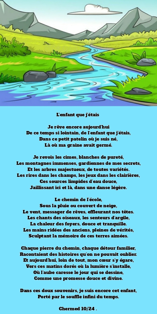 Comme une promesse douce et divine.Dans ces doux souvenirs, je suis encore cet enfant,