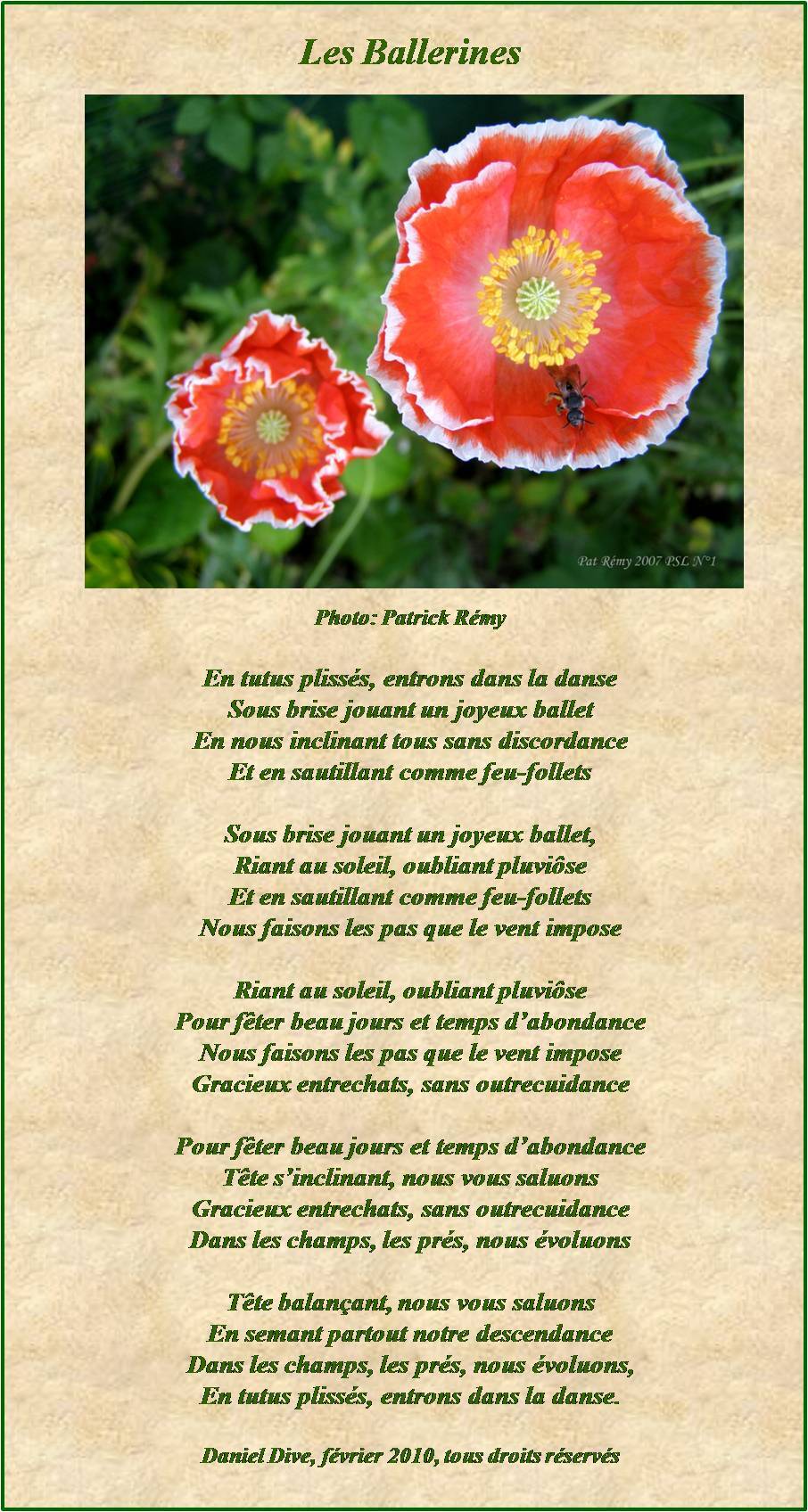 Tous mes remerciements à Patrick Rémy pour cette splendide photo qui m’a donné inspiration.Les Ballerines