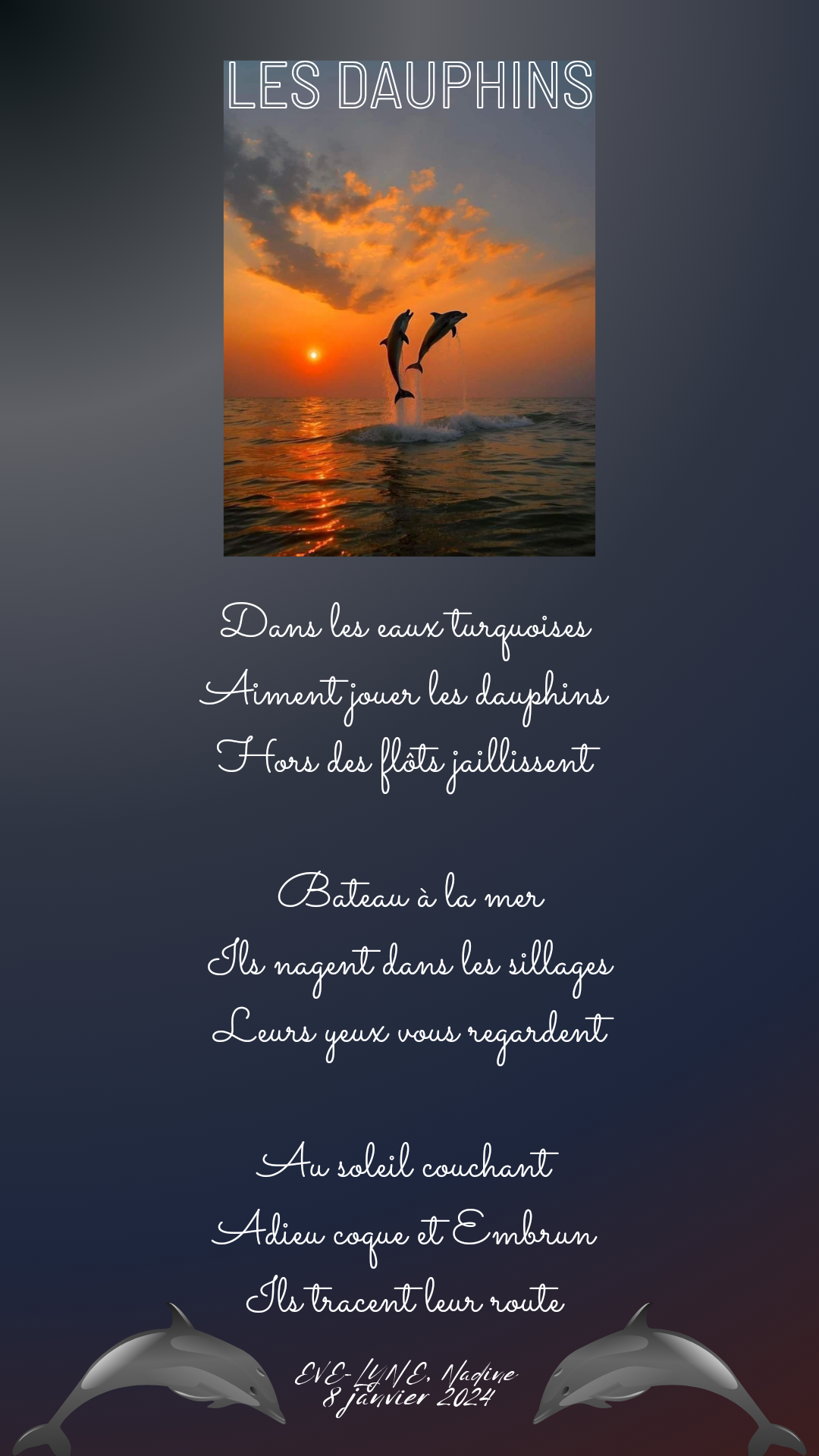 Un superbe poème en l’honneur des dauphins qui sont des poissons très intelligents et l’ami de l’homme