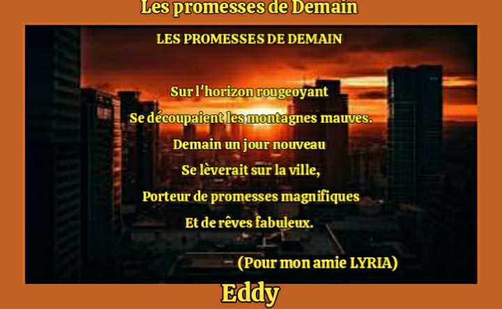 Bonjour Eddy, très beau poème, demain tout est encore possible