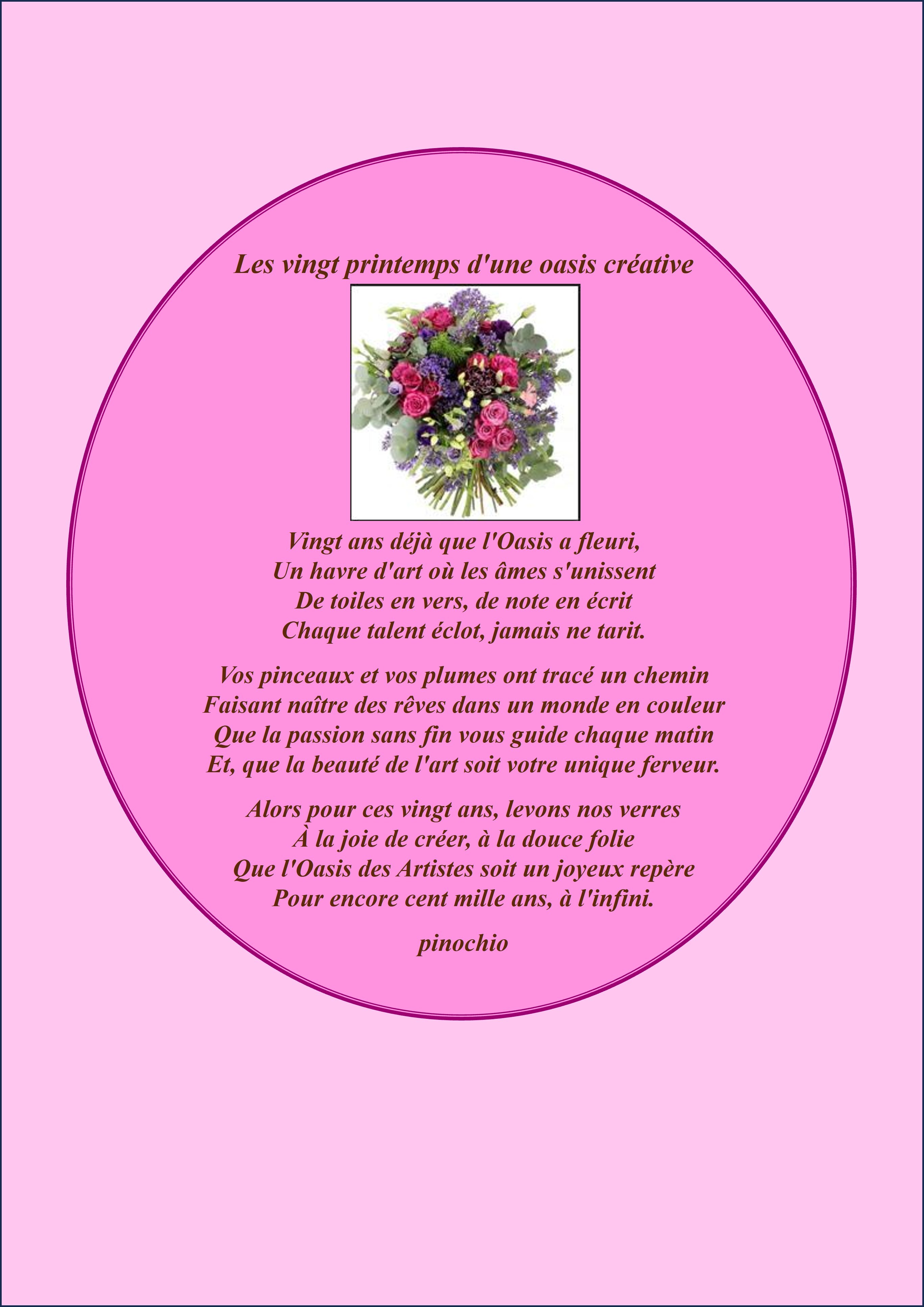 Pour cette tres jolie poésie en hommage pour les vingt ans d’oasis des artistes.Cher artsite