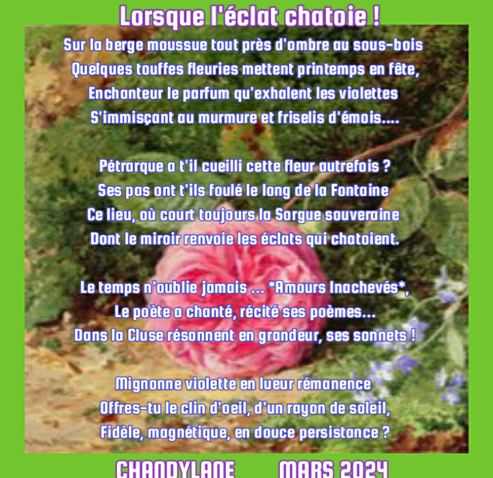 Dans la Cluse résonnent en grandeur, ses sonnets !Mignonne violette en lueur rémanence
