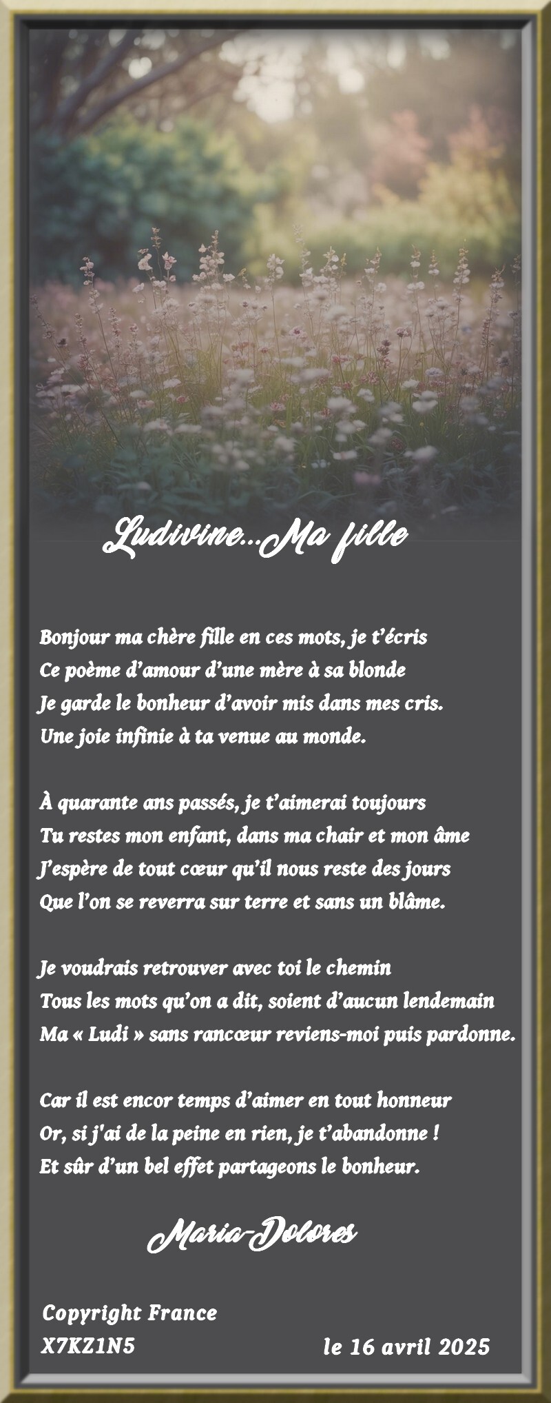 Ma « Ludi » sans rancœur reviens-moi puis pardonne.Car il est encor temps d’aimer en tout honneur