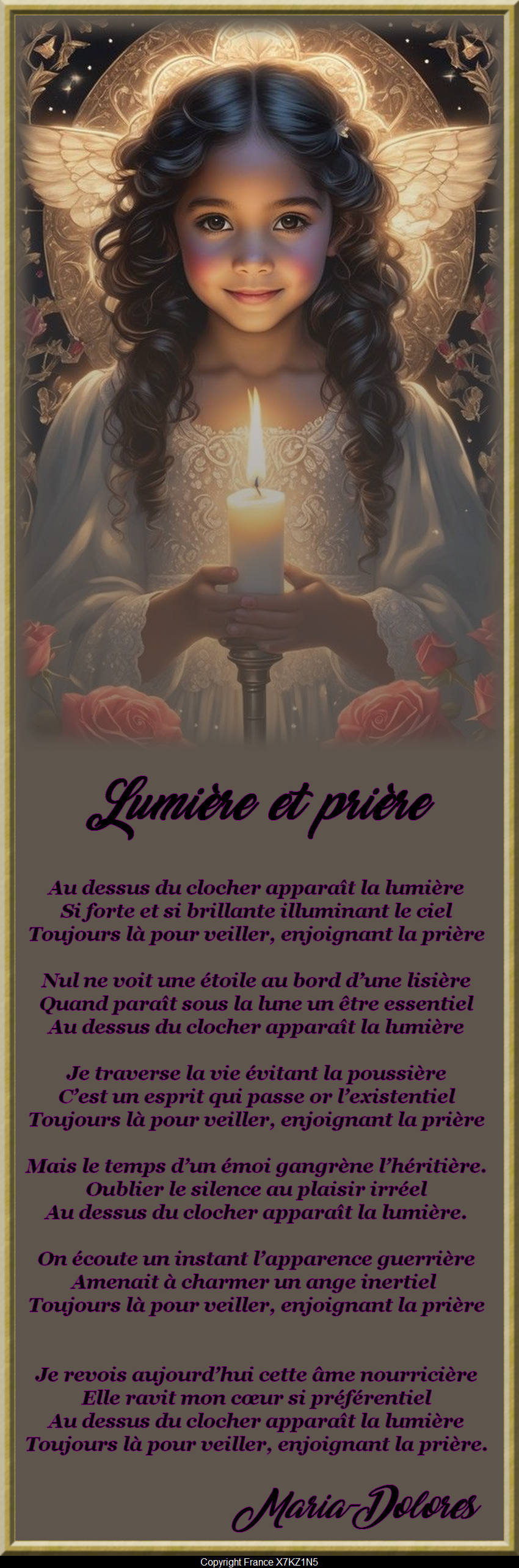 Toujours là pour veiller, enjoignant la prière.Maria-Dolores