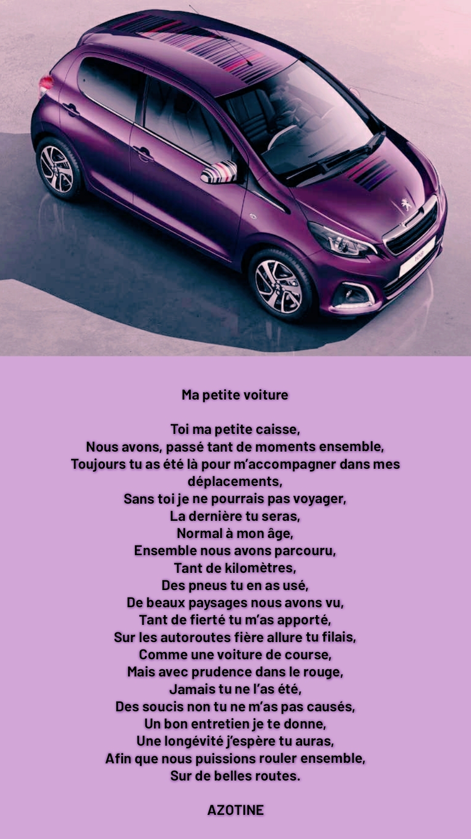 Un charmant poème pour rendre hommage à ta tite voiture