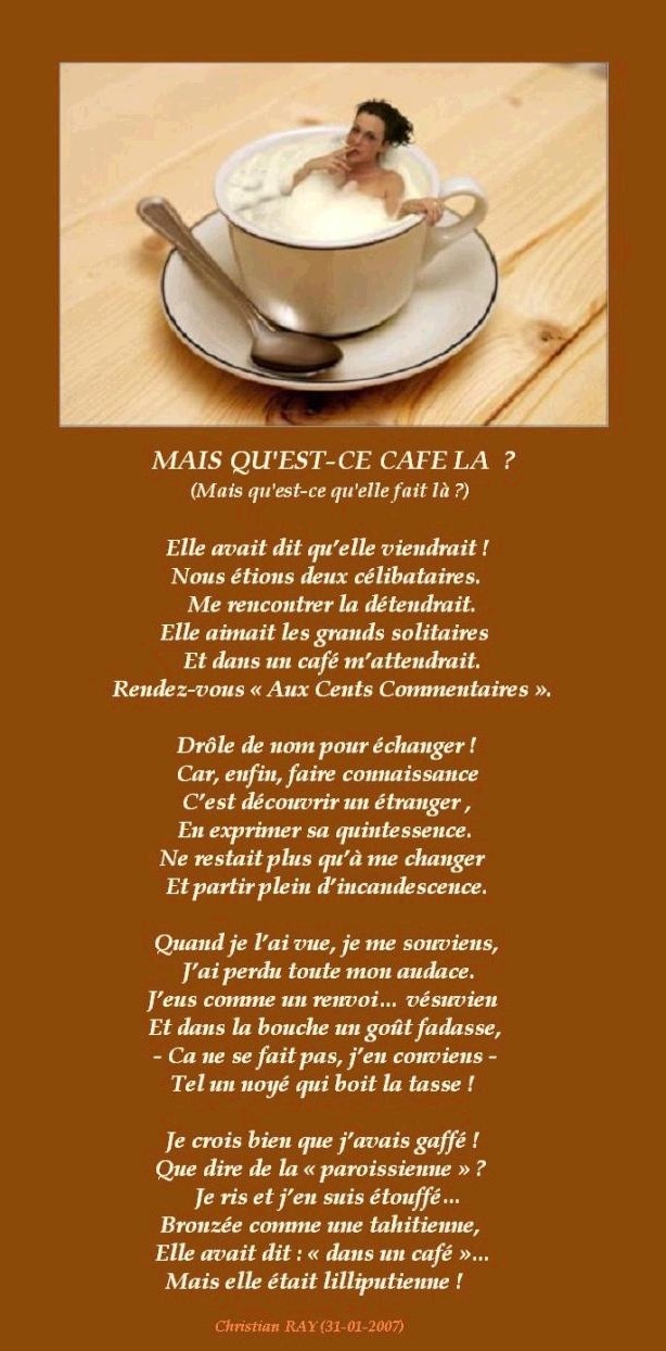 Bonsoir Chris, très belle amusette poétique, il y avait pas du calva dans ce café ?