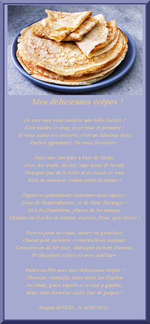 Chaudes ou froides et surtout, sucrées, Dieu, quel délice !Servies pour un repas, nature ou garniture,