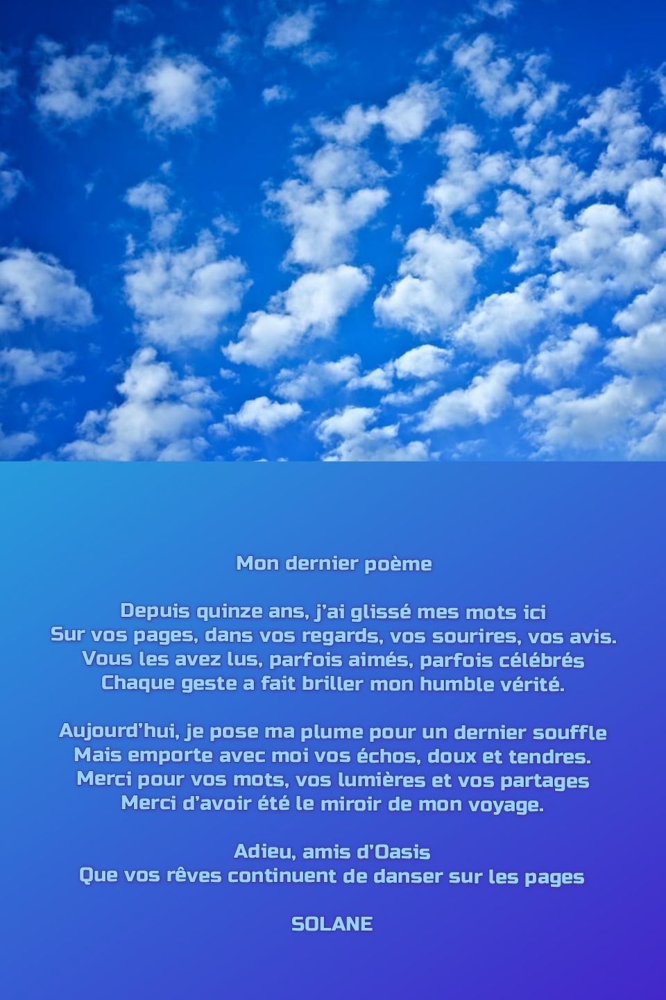 Merci d’avoir été le miroir de mon voyage.Adieu, amis d’Oasis