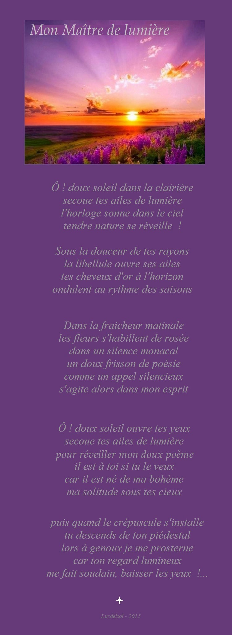 Quelle merveilleuse poésie où ton hommage au soleil est resplendissant de beauté !