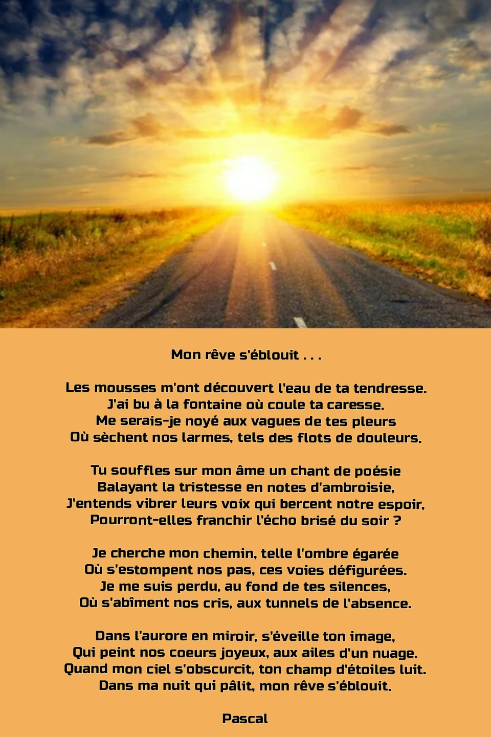 Dans ma nuit qui pâlit, mon rêve s’éblouit.Pascal