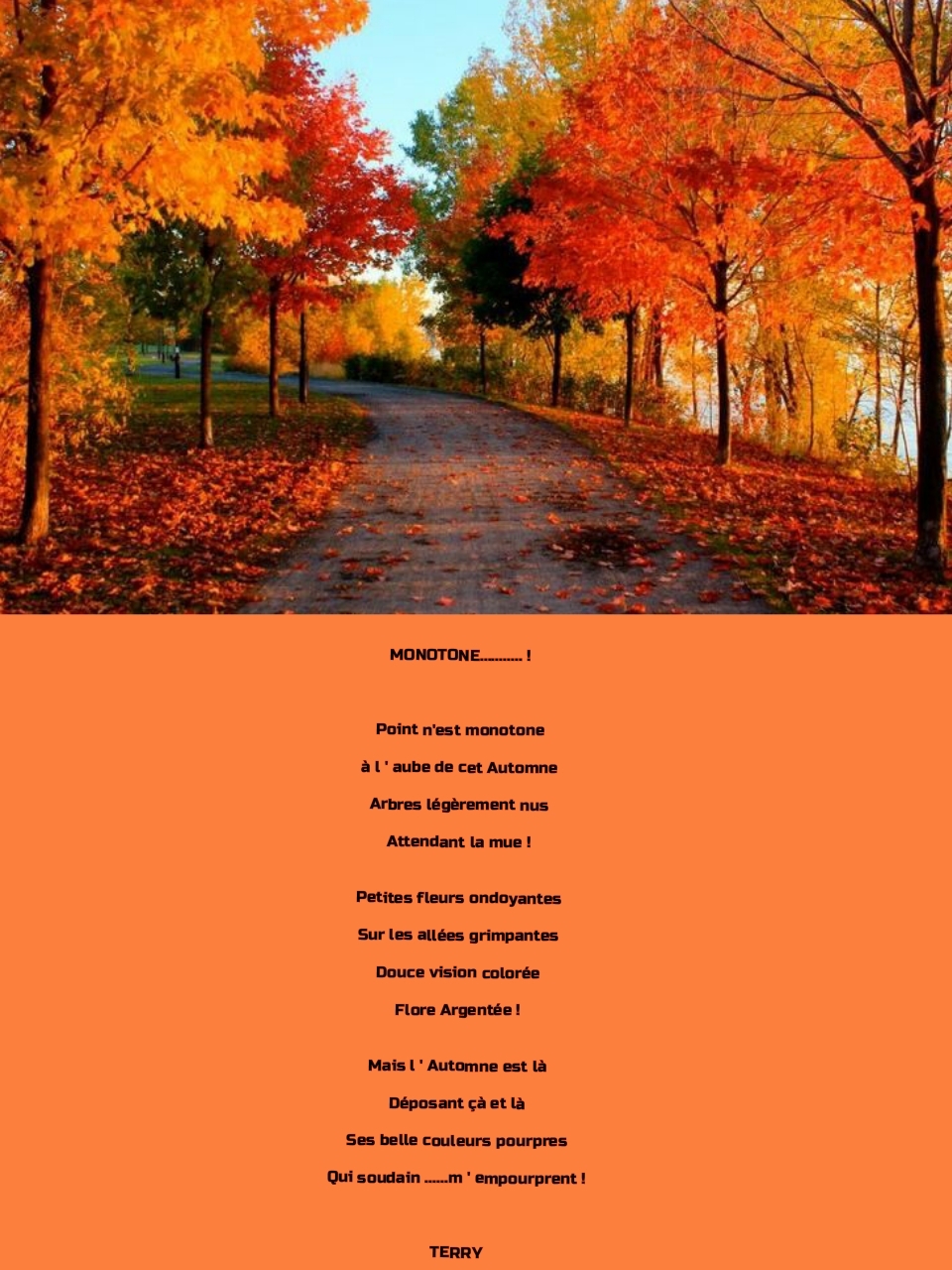 Bonsoir Terry, magnifique poème aux couleurs de l’automne