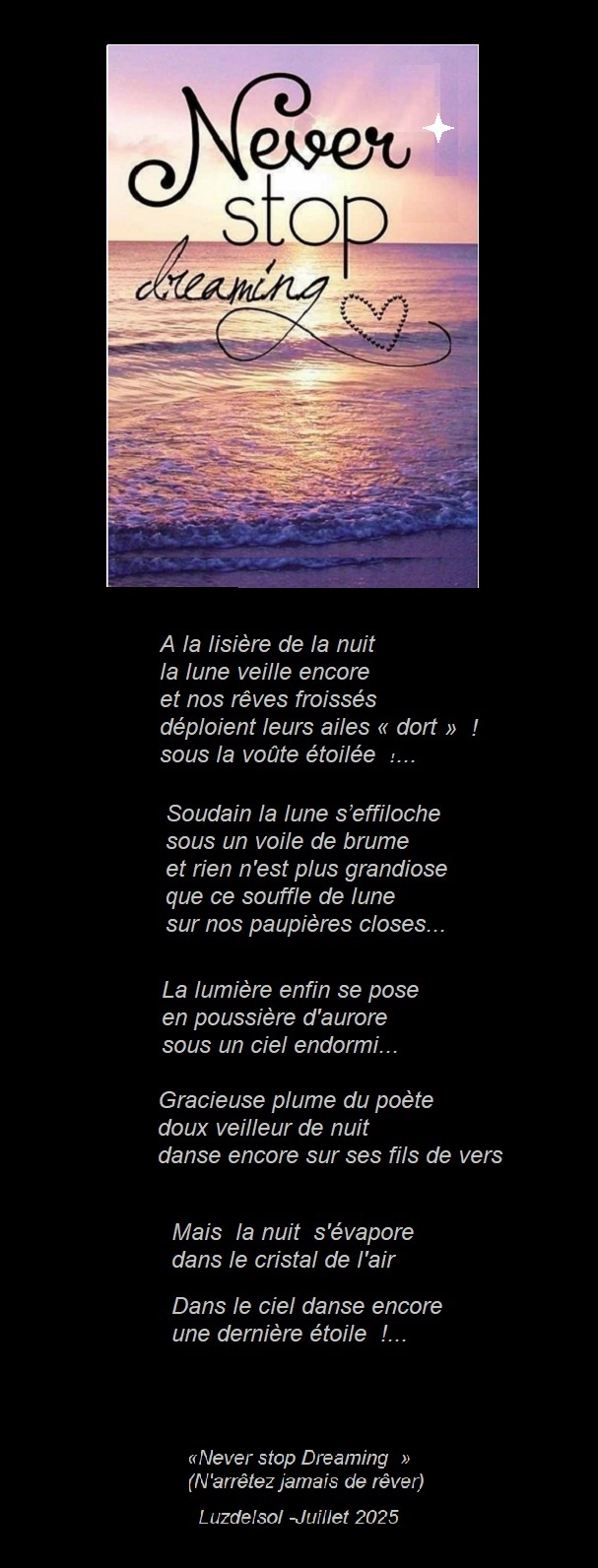 une dernière étoile !…«Never stop Dreaming » (N’arrêtez jamais de rêver)- Luzdelsol -juillet 2025