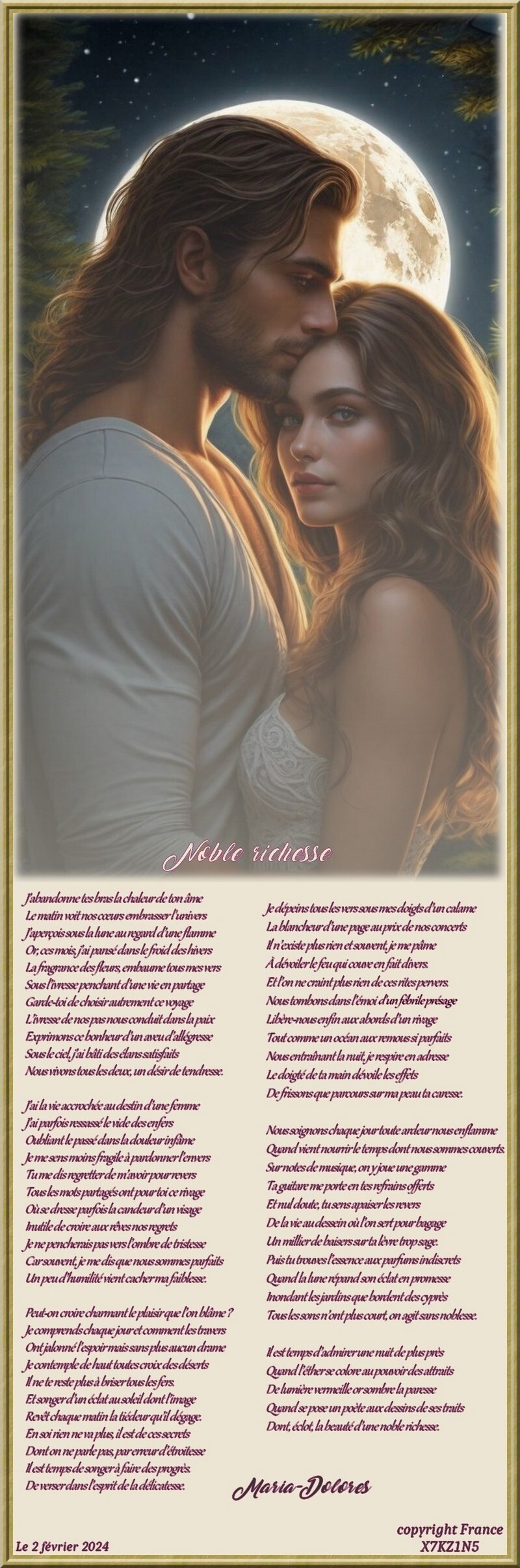Dont, éclot, la beauté d’une noble richesse.Maria-Dolores