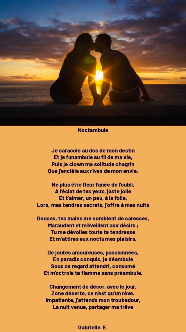 Et m’attires aux nocturnes plaisirs.De joutes amoureuses, passionnées,