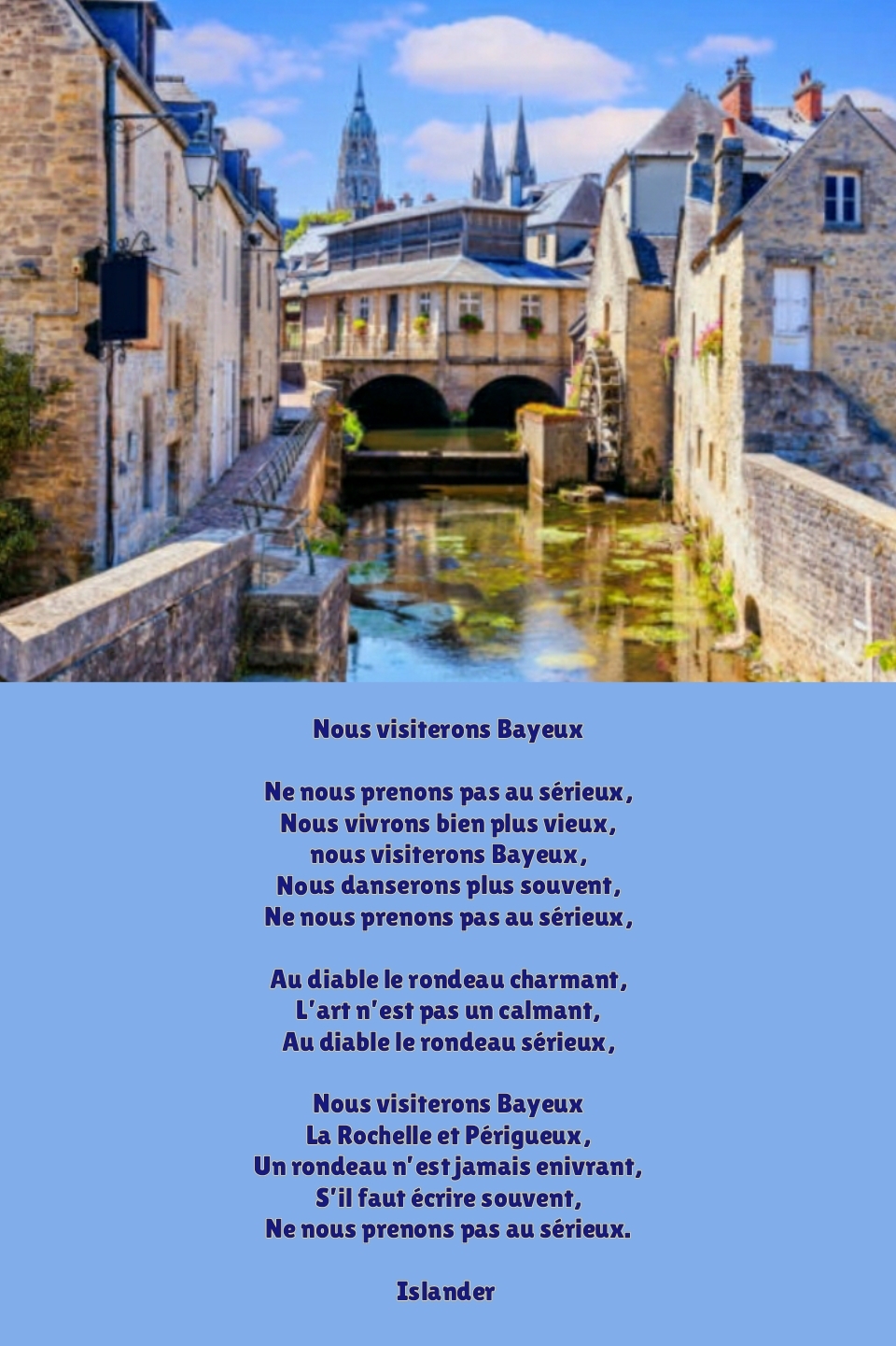 Au diable le rondeau sérieux,Nous visiterons Bayeux