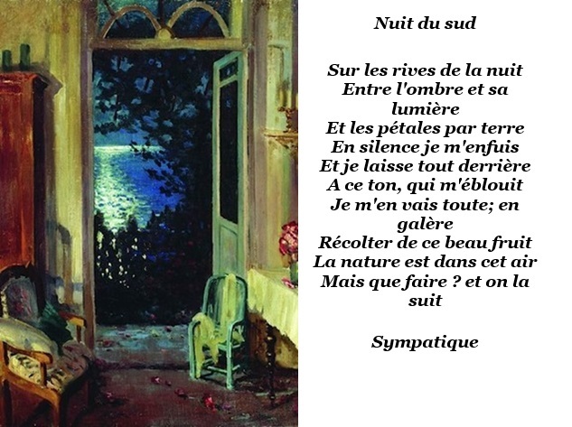 Bonsoir Sympatique, très belle inspiration poétique