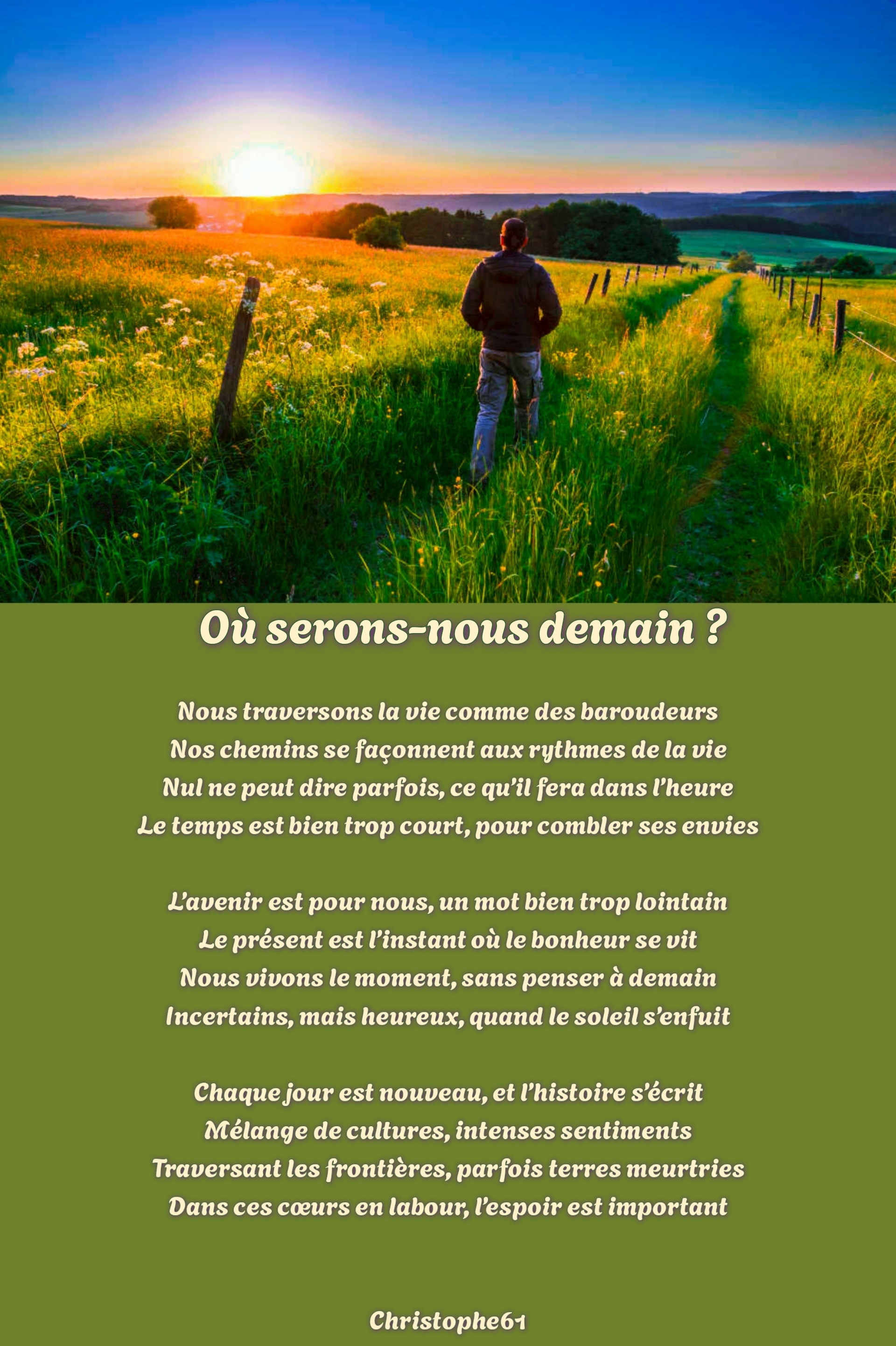 Incertains, mais heureux, quand le soleil s’enfuitChaque jour est nouveau, et l’histoire s’écrit