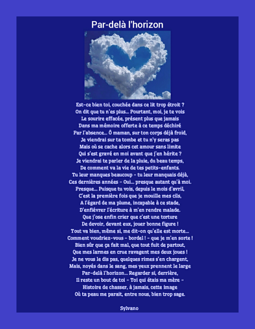 Mais, noyés dans le sang, mes yeux prennent le large