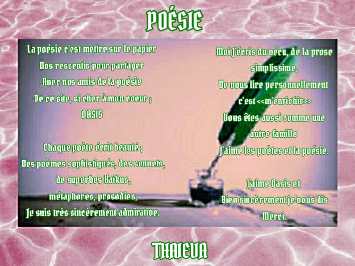 De ce site, si cher à mon cœur ; OASIS.Chaque poète écrit beauté ;