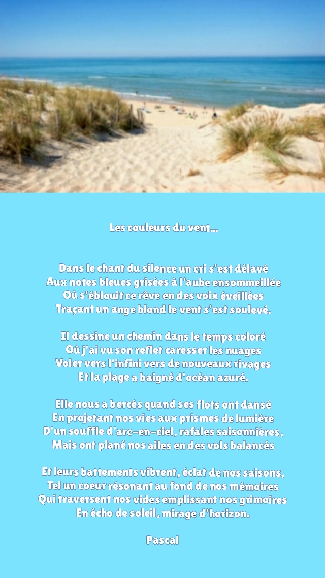 Traçant un ange blond le vent s’est soulevé.Il dessine un chemin dans le temps coloré