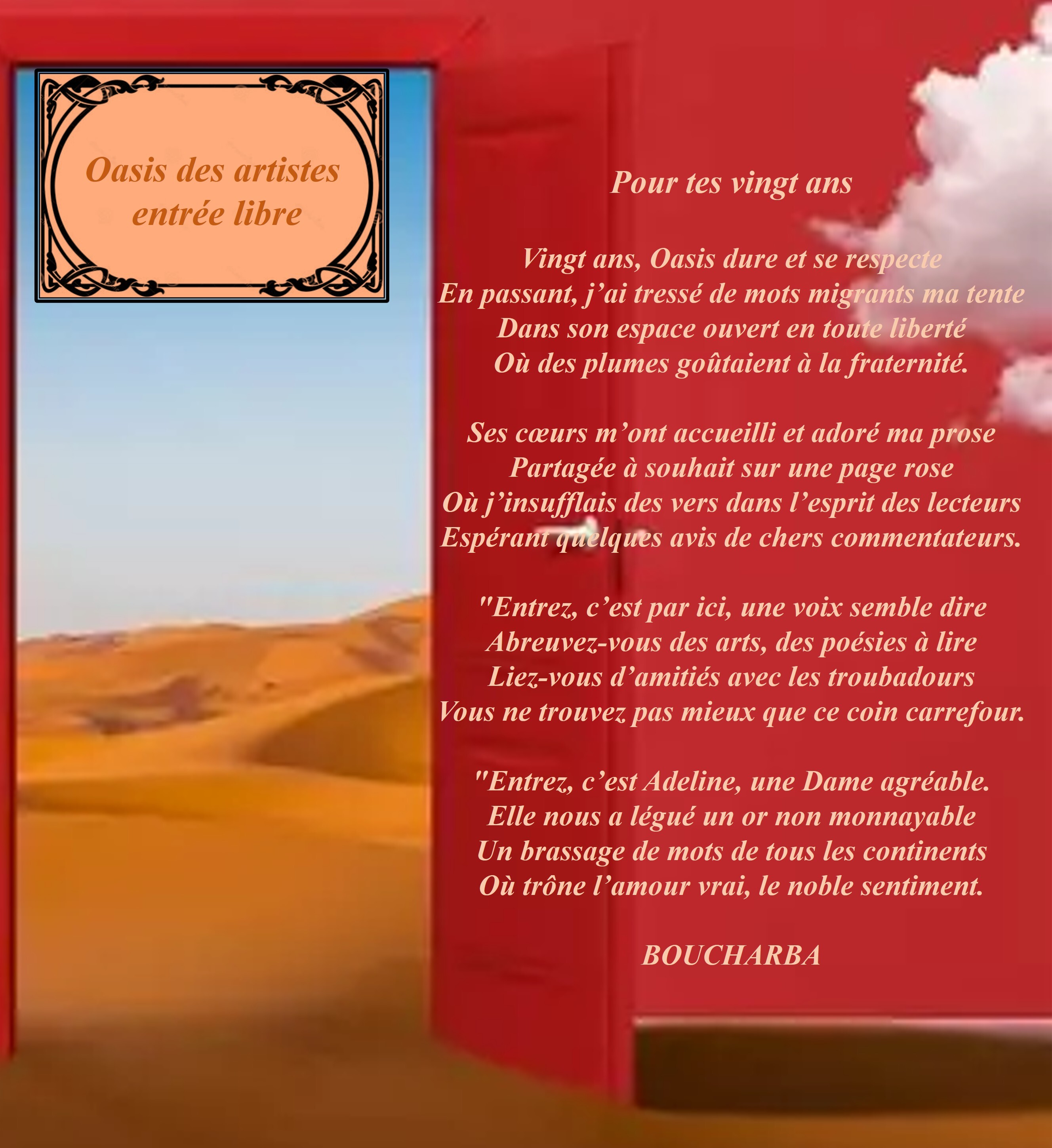 Où des plumes goûtaient à la fraternité.Ses cœurs m’ont accueilli et adoré ma prose