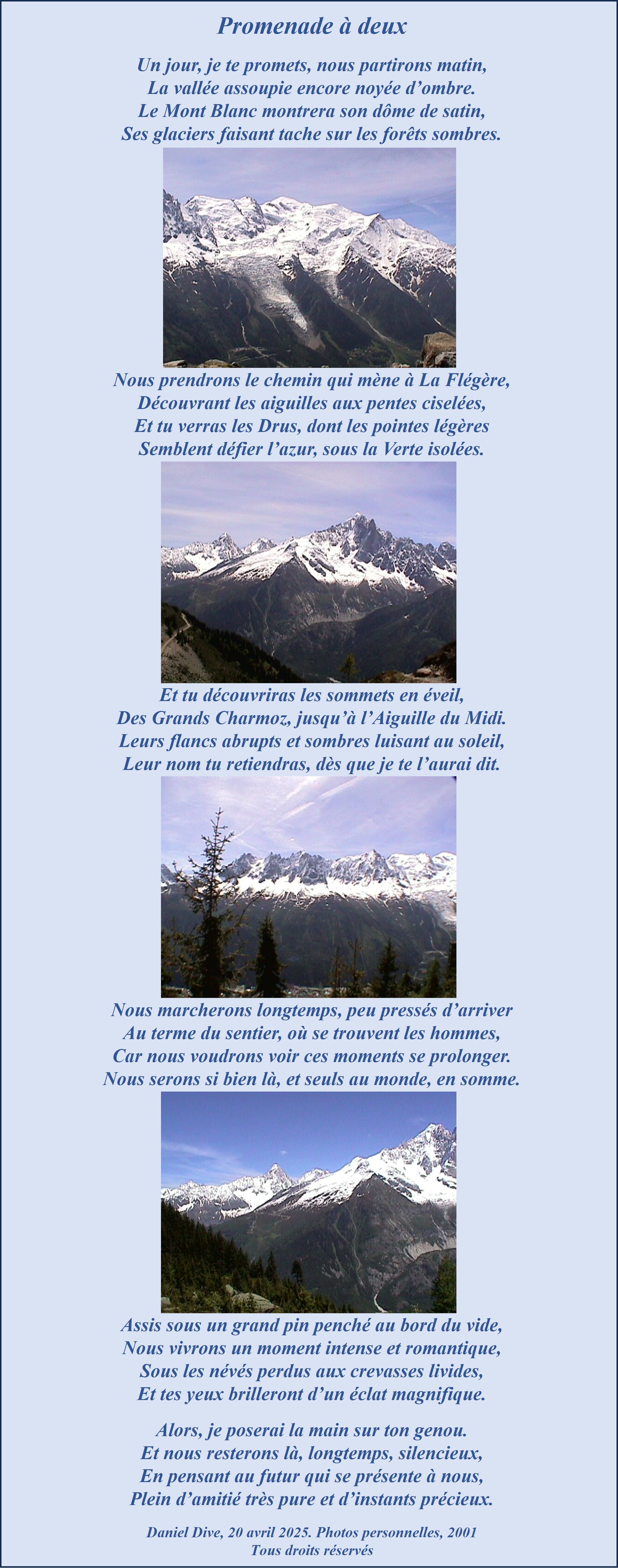 Plein d’amitié très pure et d’instants précieux.Daniel Dive, 1995. Photos personnelles, 2001
