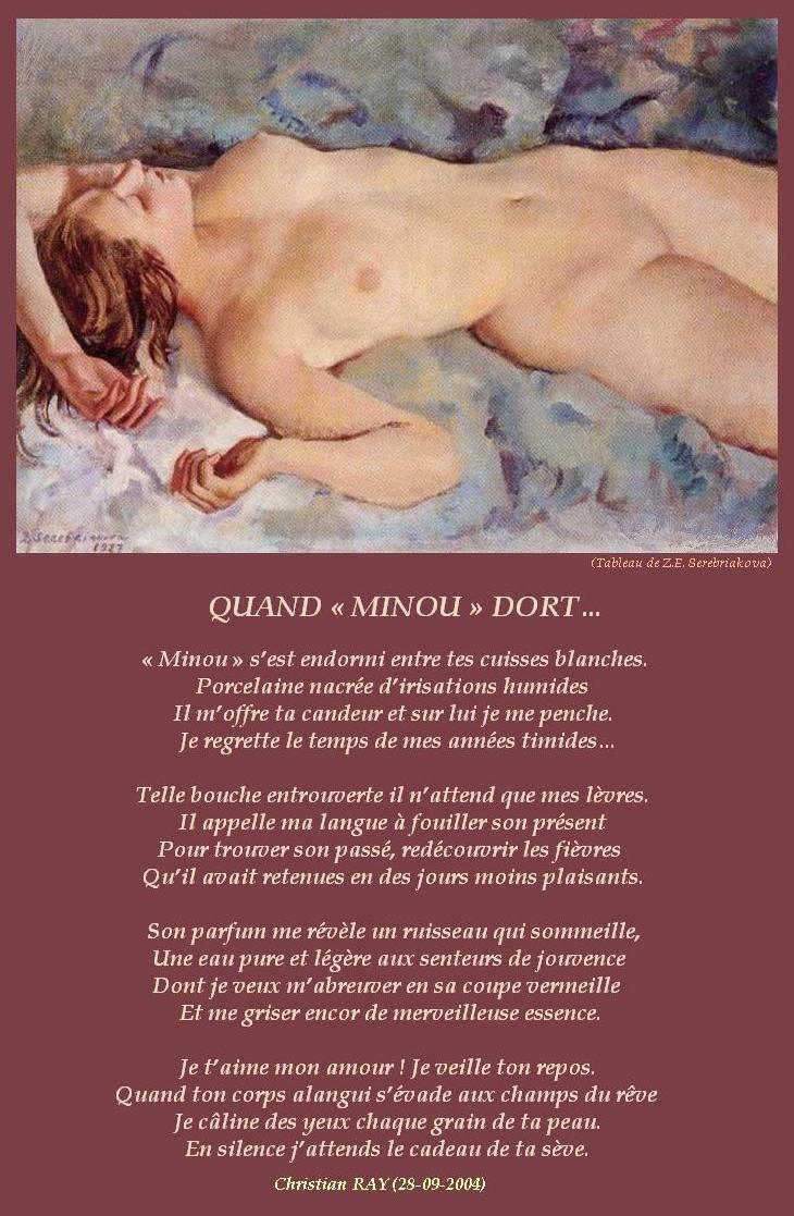 » QUAND « MINOU » DORT « Accueil › Vos poèmes ***UN SEUL PAR JOUR*** Les « poèmes » érotiques descriptifs ne sont pas les bienvenus... Ce sujet contient 2 réponses, 3 participants et a été mis à jour pour la dernière fois par Sybilla, le 28-01 20:02. Créateur Sujet 28 janvier 2026 à 20h02 #2725185 Mascotte d'Oasis christian Sujet: 6554Réponses: 13392 Christian RAY avec Michel Drucker et Patrice Laffont Créateur Sujet Vous lisez 1 fil de discussion Auteur Réponses 27 janvier 2026 à 23h02 #3601727 Mascotte d'Oasis islander Sujet: 2940Réponses: 34198 c’est beau et la plume nous révèle des secrets, 28 janvier 2026 à 20h02 #3601789 SybillaMaître des clés Sujet: 5464Réponses: 79667 Bonsoir Cher Ami poète Christian, Une belle poésie d’amour d’une profonde sensualité ! Belle soirée Cher Ami poète Christian ! Toutes mes amitiés Sybilla Le r?ve est le poumon de ma vie (Citation de Sybilla) Auteur Réponses Vous lisez 1 fil de discussion Vous devez être connecté pour répondre à ce sujet. Connexion Identifiant: Mot de passe: Rester connecté Connexion Log in / Register