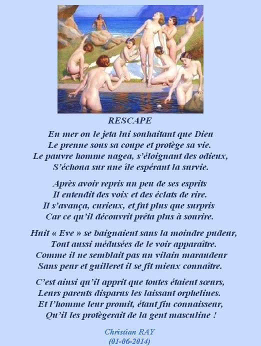 » RESCAPE « Accueil › Vos poèmes ***UN SEUL PAR JOUR*** Les « poèmes » érotiques descriptifs ne sont pas les bienvenus... Ce sujet contient 2 réponses, 3 participants et a été mis à jour pour la dernière fois par Fran?ois, le 18-06-2025 16:40. Créateur Sujet 18 juin 2025 à 16h40 #2720845 Mascotte d'Oasis christian Sujet: 6554Réponses: 13392 Christian RAY avec Michel Drucker et Patrice Laffont Créateur Sujet Vous lisez 1 fil de discussion Auteur Réponses 18 juin 2025 à 15h38 #3572502 SybillaMaître des clés Sujet: 5464Réponses: 79667 Bonjour Cher Ami poète Christian, Il a dû se croire arrivé au paradis ! Sourire… Belle journée Cher Ami poète Christian ! Toutes mes amitiés Sybilla Le r?ve est le poumon de ma vie (Citation de Sybilla) 18 juin 2025 à 16h40 #3572514 Fran?ois Sujet: 300Réponses: 49951 Bonsoir Chris, très belle histoire que conte la plume Amitiés La po?sie, c'est comme la cuisine, le mot faitout 00063312-1 Auteur Réponses Vous lisez 1 fil de discussion Vous devez être connecté pour répondre à ce sujet. Connexion Identifiant: Mot de passe: Rester connecté Connexion Log in / Register