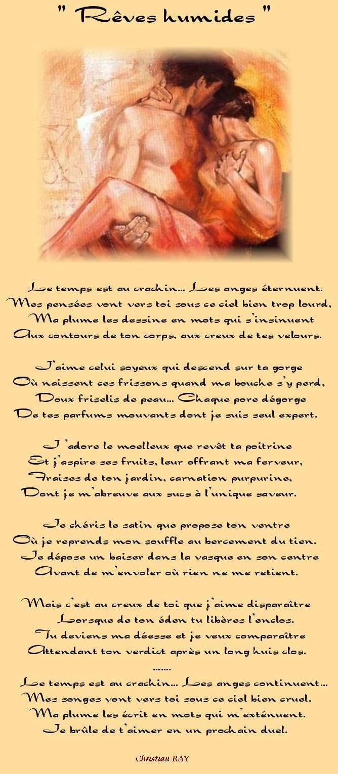 » RÊVES HUMIDES « Accueil › Vos poèmes ***UN SEUL PAR JOUR*** Les « poèmes » érotiques descriptifs ne sont pas les bienvenus... Ce sujet contient 1 réponse, 2 participants et a été mis à jour pour la dernière fois par Noel-Opan, le 29-01 07:21. Créateur Sujet 29 janvier 2026 à 7h21 #2725224 Mascotte d'Oasis christian Sujet: 6554Réponses: 13392 Christian RAY avec Michel Drucker et Patrice Laffont Créateur Sujet Vous lisez 0 fil de discussion Auteur Réponses 29 janvier 2026 à 7h21 #3601822 Mascotte d'Oasis Noel-Opan Sujet: 1825Réponses: 9624 Le show décrit, des cris aussi, l’alcôve en pleins ébats… La rime s’arrime où se prend le plaisir. Auteur Réponses Vous lisez 0 fil de discussion Vous devez être connecté pour répondre à ce sujet. Connexion Identifiant: Mot de passe: Rester connecté Connexion Log in / Register