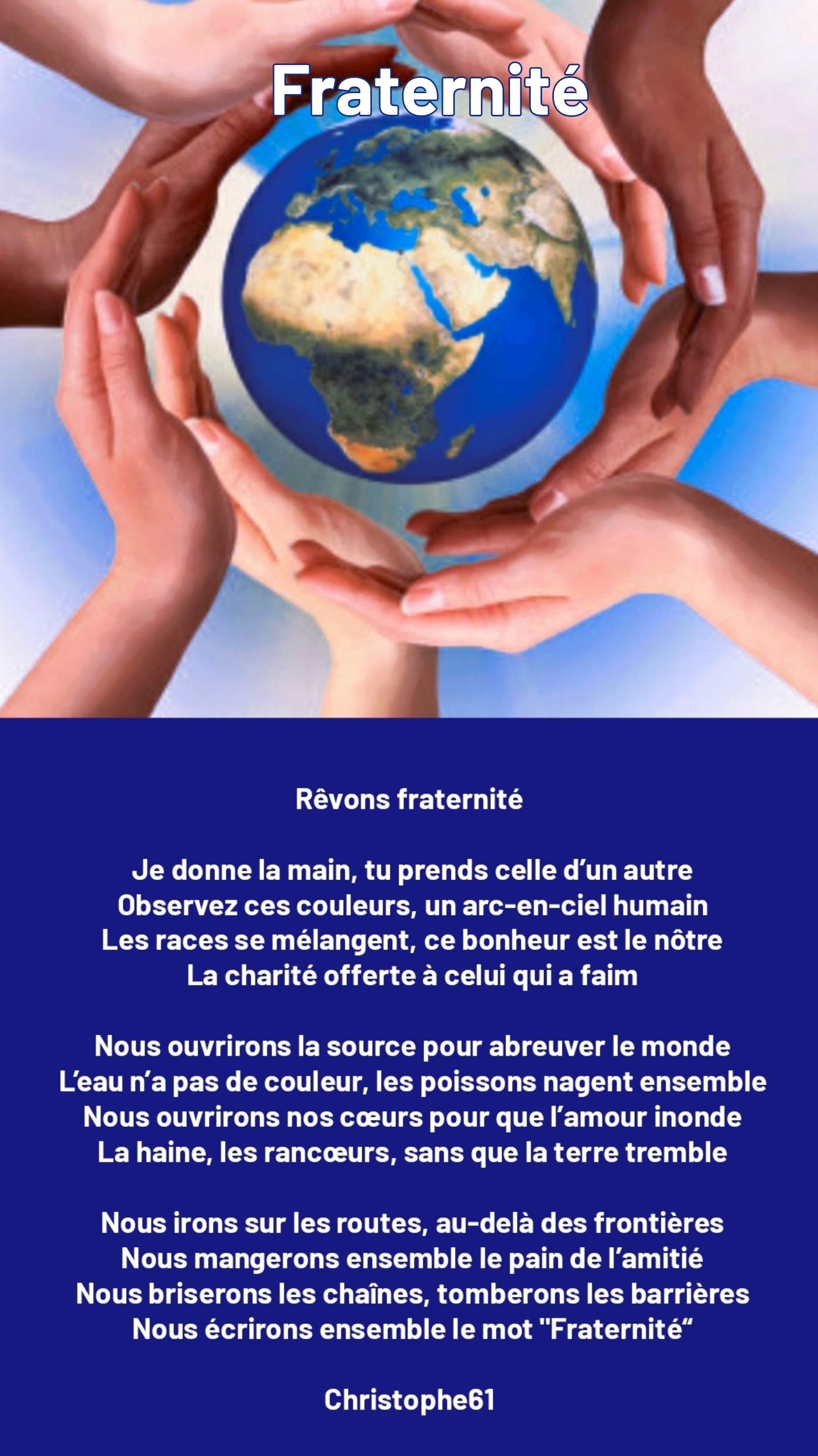 Magnifique poème appelant à la fraternité et à plus d’humanisme.