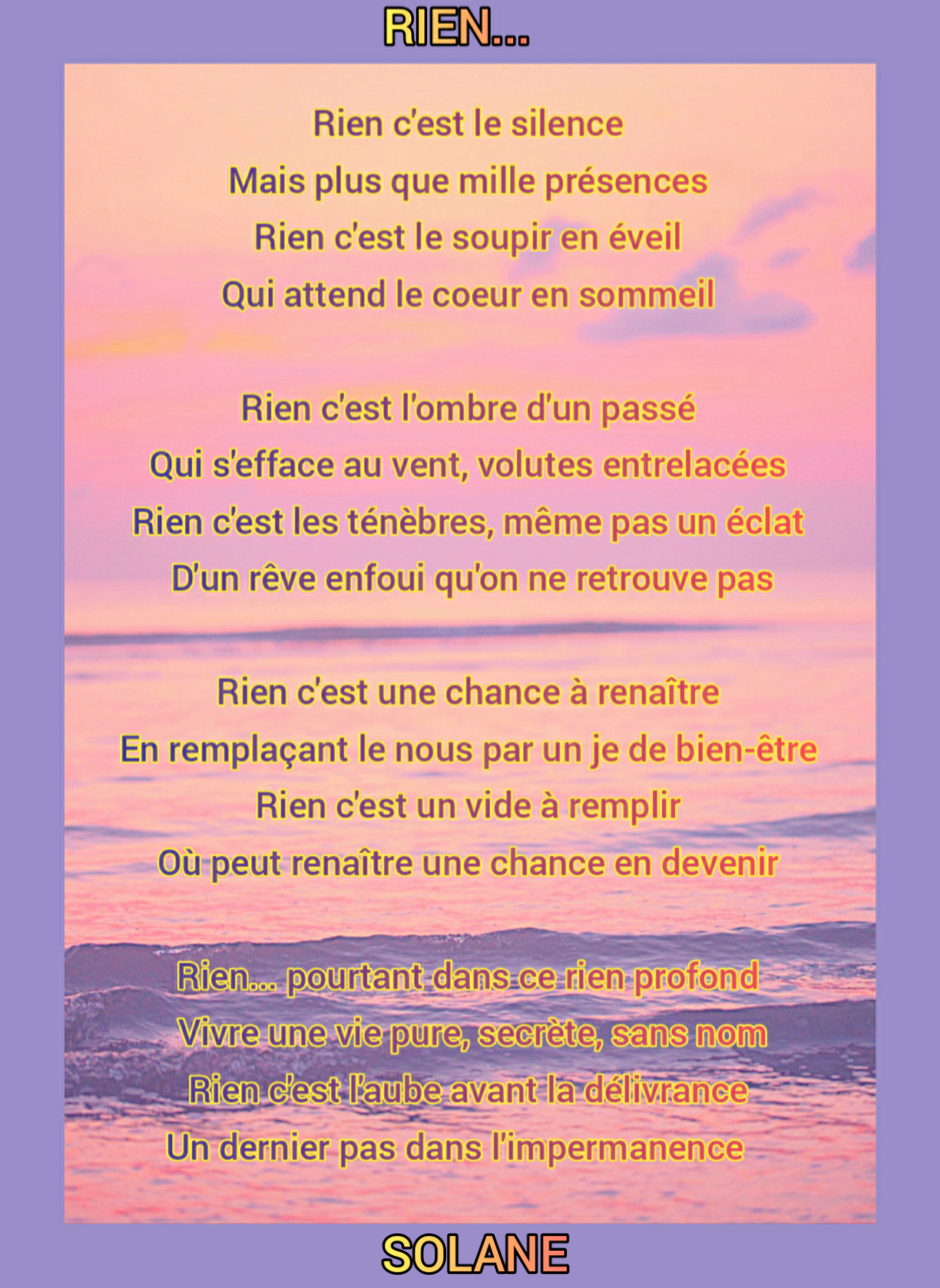Où peut renaître une chance en devenirRien… pourtant dans ce rien profond