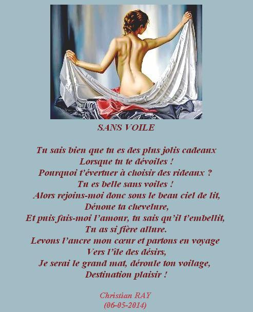 » SANS VOILE « Accueil › Vos poèmes ***UN SEUL PAR JOUR*** Les « poèmes » érotiques descriptifs ne sont pas les bienvenus... Ce sujet contient 4 réponses, 5 participants et a été mis à jour pour la dernière fois par Fran?ois, le 06-09-2024 16:24. Créateur Sujet 6 septembre 2024 à 16h24 #2714740 Mascotte d'Oasis christian Sujet: 6554Réponses: 13392 [url=https://zupimages.net/viewer.php?id=24/36/3dih.jpg][/url] Christian RAY avec Michel Drucker et Patrice Laffont Créateur Sujet Vous lisez 3 fils de discussion Auteur Réponses 6 septembre 2024 à 6h42 #3532010 M.Go Sujet: 129Réponses: 1032 Cette dame connait ses classiques : « Couvrez ce sein, que je ne saurais voir. Par de pareils objets les âmes sont blessées, Et cela fait venir de coupables pensées. » Le Tartuffe Molière F?e Miltanya pour ceux qui le m?ritent ou Marquise ?lo?se pour les amateurs de jeux de r?les... Mercy avec un Y http://fee-milt... 6 septembre 2024 à 7h00 #3532018 Sympatique Sujet: 615Réponses: 12189 je vois que la photo fait oublier souvent les mots ;;;SANS VOILE 6 septembre 2024 à 12h54 #3532062 SybillaMaître des clés Sujet: 5464Réponses: 79667 Bonjour Christian, De forts belles rimes poétiques se dévoilent en tes mots sur cette femme sans voile ! Belle journée Cher Ami poète Christian ! Toutes mes amitiés Sybilla Le r?ve est le poumon de ma vie (Citation de Sybilla) 6 septembre 2024 à 16h24 #3532098 Fran?ois Sujet: 300Réponses: 49951 Bonsoir Chris, très bel appel à passer à l’abordage Amitiés La po?sie, c'est comme la cuisine, le mot faitout 00063312-1 Auteur Réponses Vous lisez 3 fils de discussion Vous devez être connecté pour répondre à ce sujet. Connexion Identifiant: Mot de passe: Rester connecté Connexion Log in / Register
