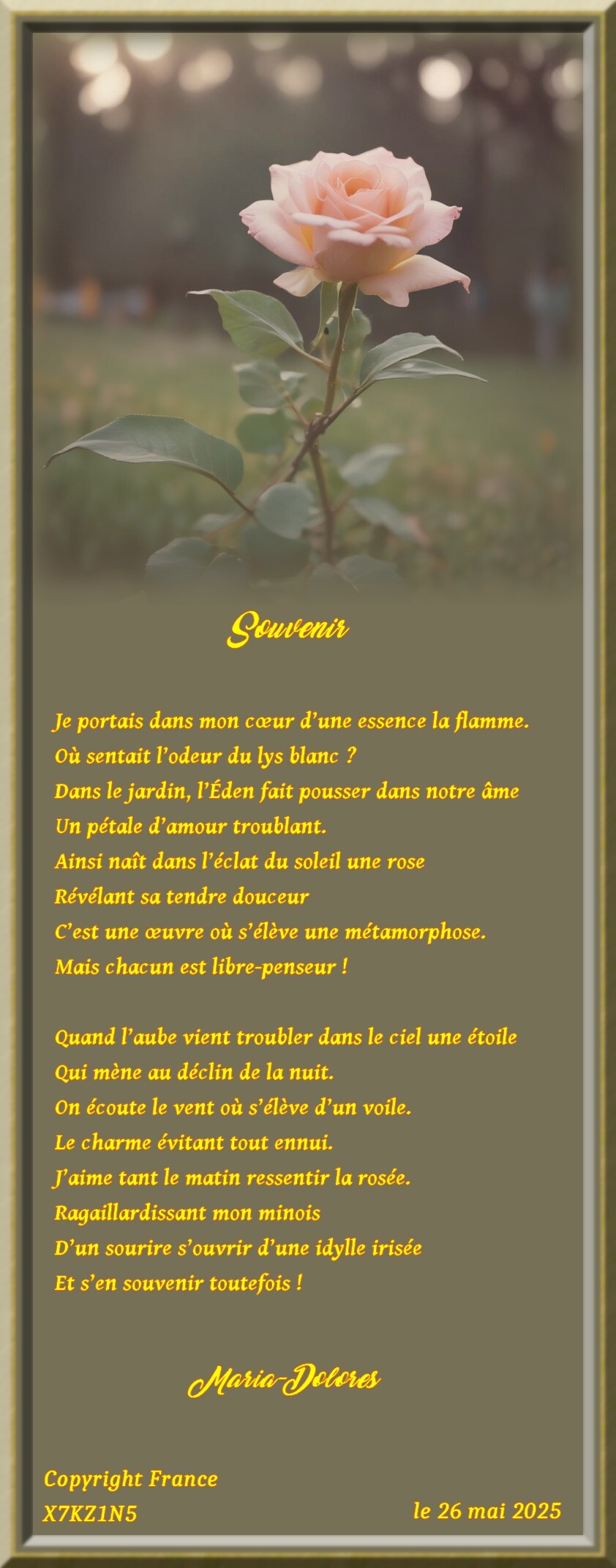 Et s’en souvenir toutefois !Maria-Dolores