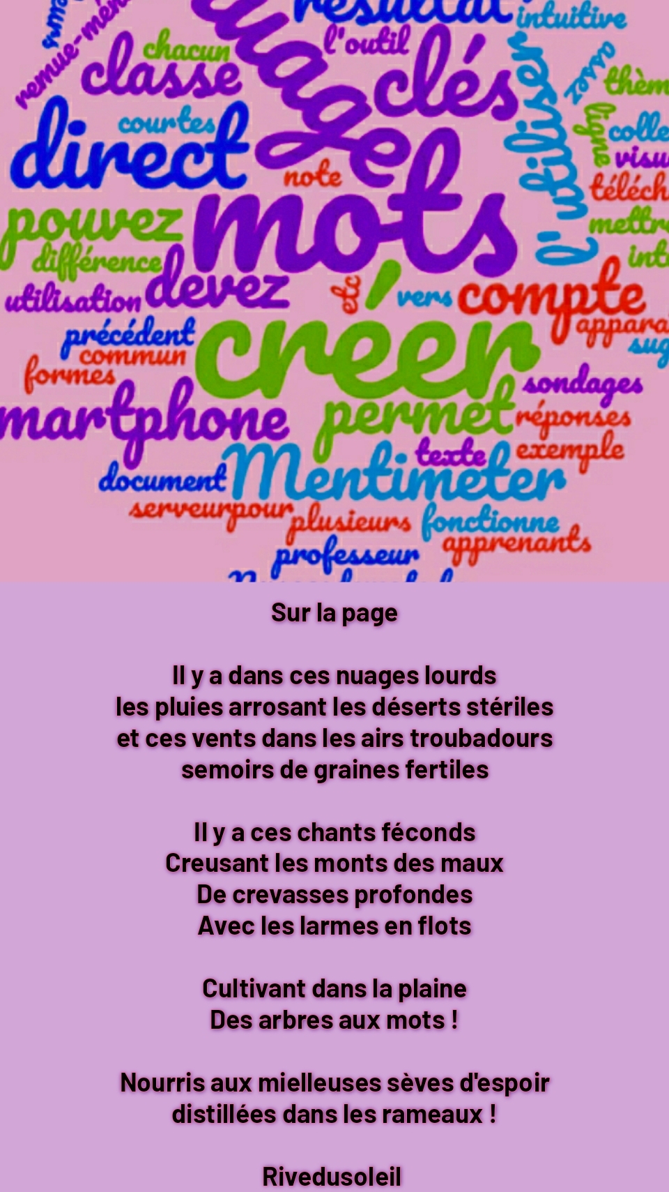 Bonsoir rivedusoleil, très bel instant poétique sur la page