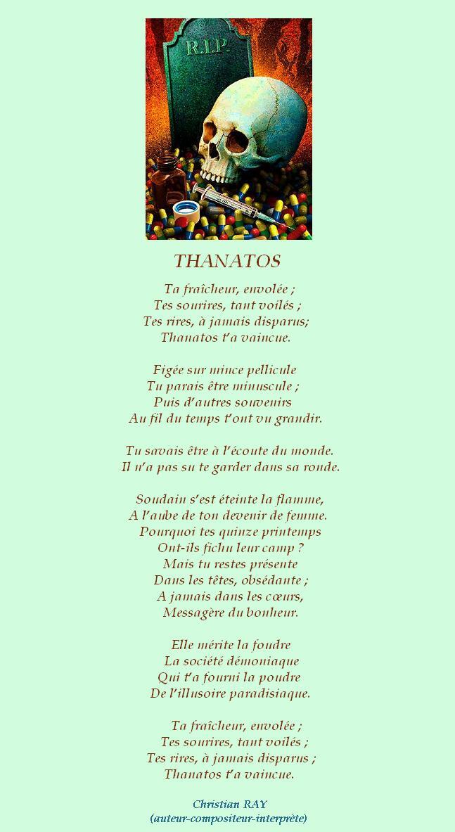 » THANATOS » ( chanson / guitare ) Accueil › Vos poèmes ***UN SEUL PAR JOUR*** Les « poèmes » érotiques descriptifs ne sont pas les bienvenus... Ce sujet contient 4 réponses, 5 participants et a été mis à jour pour la dernière fois par Sybilla, le 18-12-2025 19:42. Vous lisez 4 fils de discussion Auteur Messages 18 décembre 2025 à 6h32 #3597529 Marido Sujet: 112Réponses: 1486 Très triste..et joliment poétisé pour dénoncer ce fléau. "Montrer le chemin sans se perdre Tendre la main sans s’oublier Prendre soin sans se renier Aimer sans jamais se dissoudre" Marido 18 décembre 2025 à 6h55 #3597530 Mascotte d'Oasis Noel-Opan Sujet: 1825Réponses: 9624 A se soumettre à ce fléau on n’en vit pas en héroïne… 18 décembre 2025 à 8h48 #3597543 Fran?ois Sujet: 300Réponses: 49951 Bonjour Chris, émouvant poème Amitiés La po?sie, c'est comme la cuisine, le mot faitout 00063312-1 18 décembre 2025 à 19h42 #2724519 Mascotte d'Oasis christian Sujet: 6554Réponses: 13392 Pour écouter le chanson : CLIC ci-dessous https://sd-1.archive-host.com/membres/playlist/2112031125/07Thanatos.wma Christian RAY avec Michel Drucker et Patrice Laffont 18 décembre 2025 à 19h42 #3597581 SybillaMaître des clés Sujet: 5464Réponses: 79667 Bonsoir Cher Ami poète Christian, Pas très joyeuse… à la veille des fêtes ta très belle poésie émouvante ! Belle soirée Cher Ami poète Christian ! Toutes mes amitiés Sybilla Le r?ve est le poumon de ma vie (Citation de Sybilla) Auteur Messages Vous lisez 4 fils de discussion Vous devez être connecté pour répondre à ce sujet. Connexion Identifiant: Mot de passe: Rester connecté Connexion Log in / Register