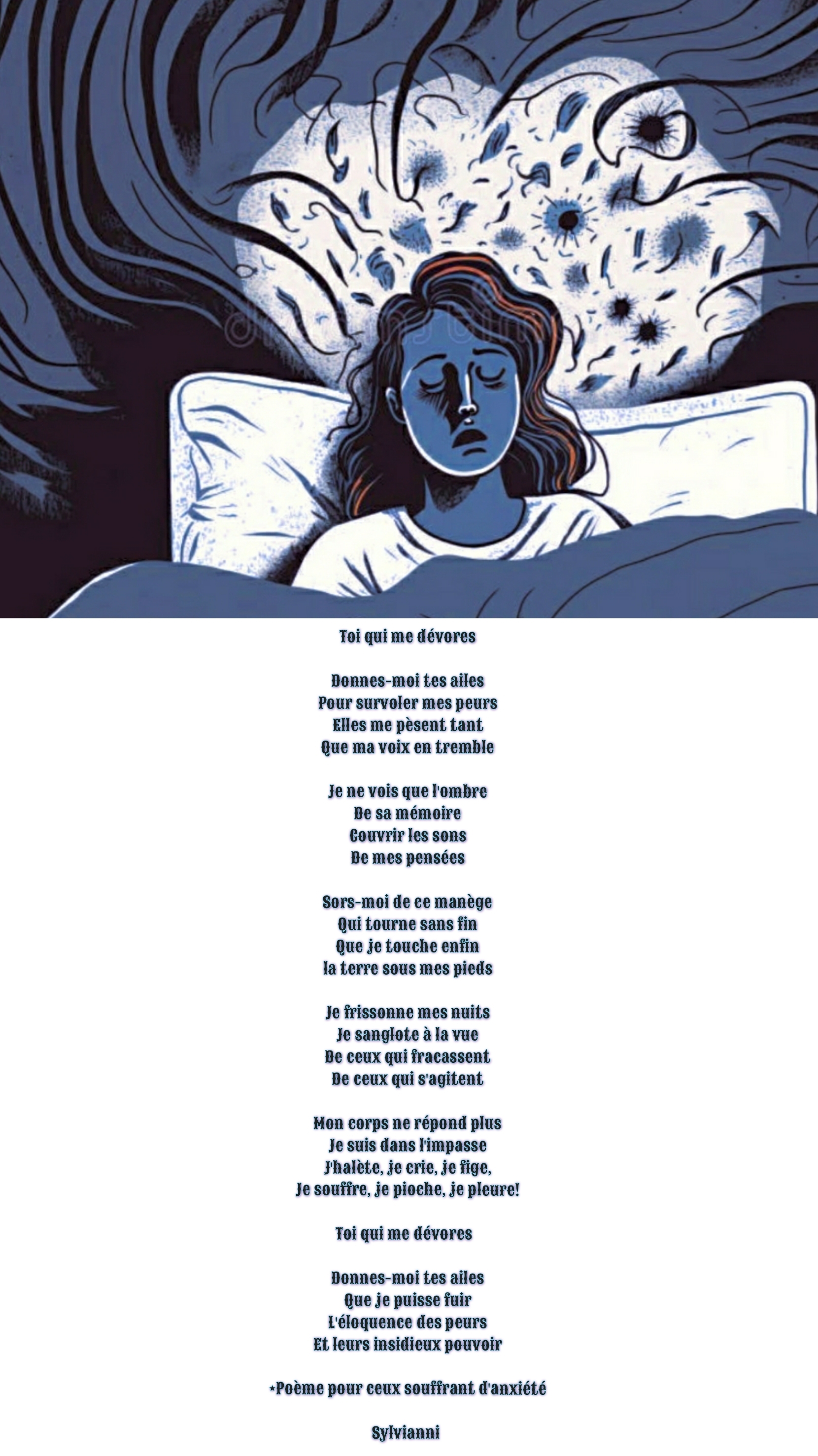 Bonjour sylvianni, très touchant poème sur l’anxiété en fortes images