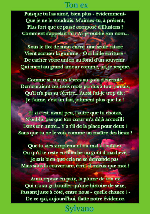 Mais sous la couverture, écrit-il mieux que moi ?Ainsi repose en paix, la plume de ton ex