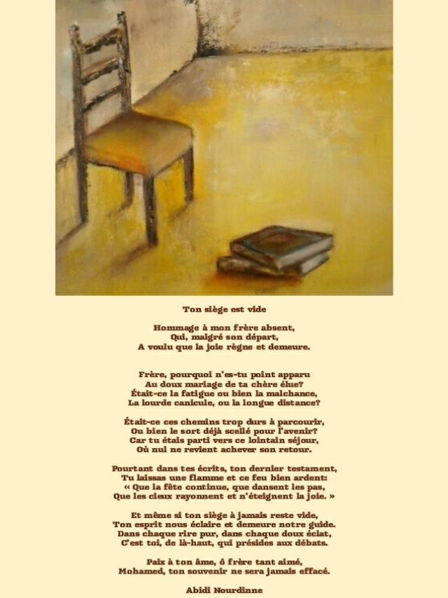 C’est toi, de là-haut, qui présides aux débats.Paix à ton âme, ô frère tant aimé,