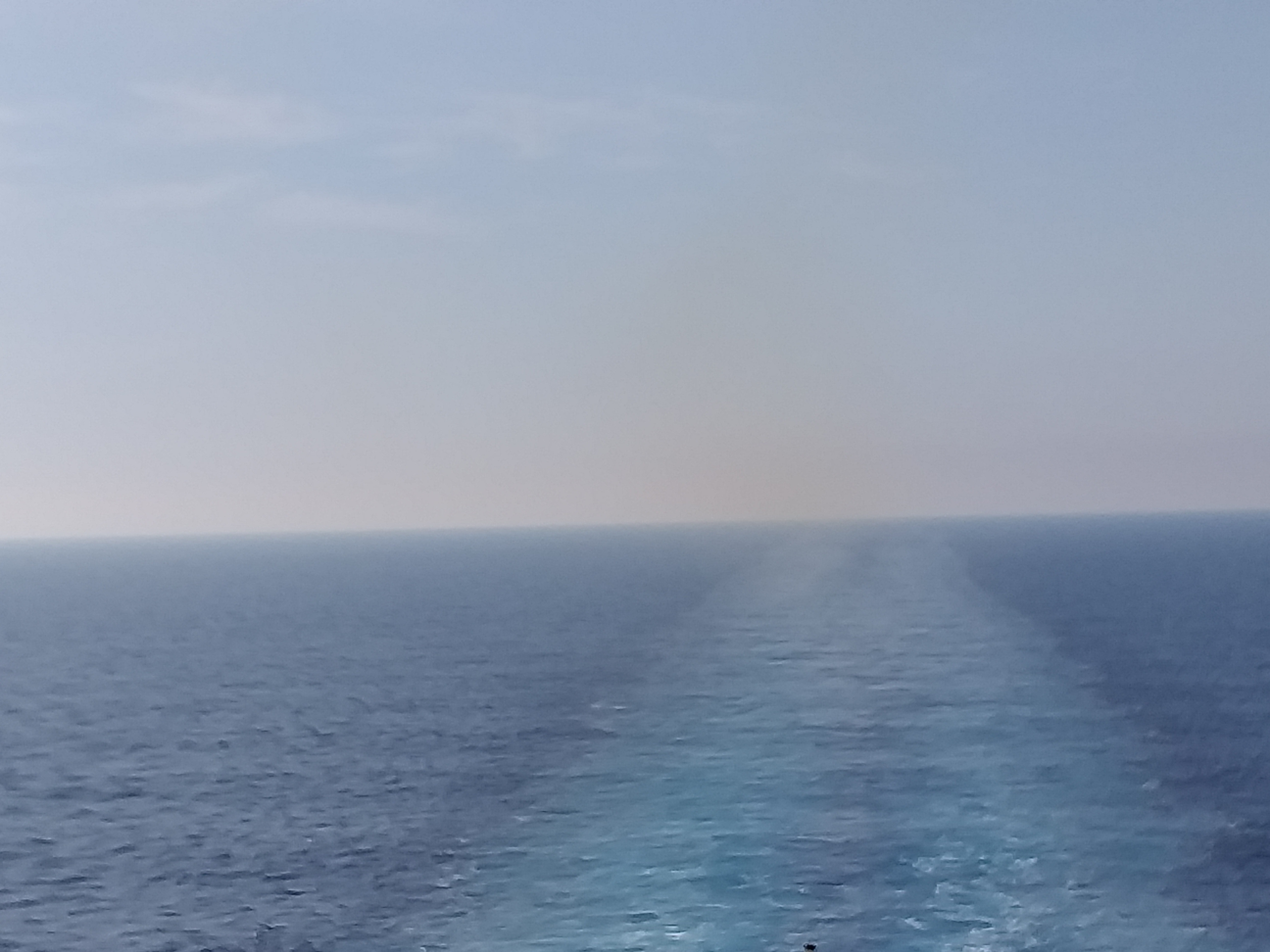 Les dauphins se livrent à un spectacle inopiné.Déjà la terre se devine au loin dans la brume,