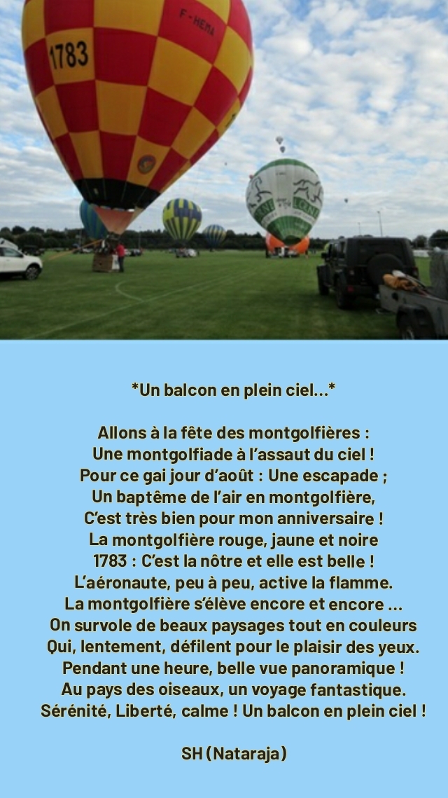 Superbe envolé de ballons cher Nataraja