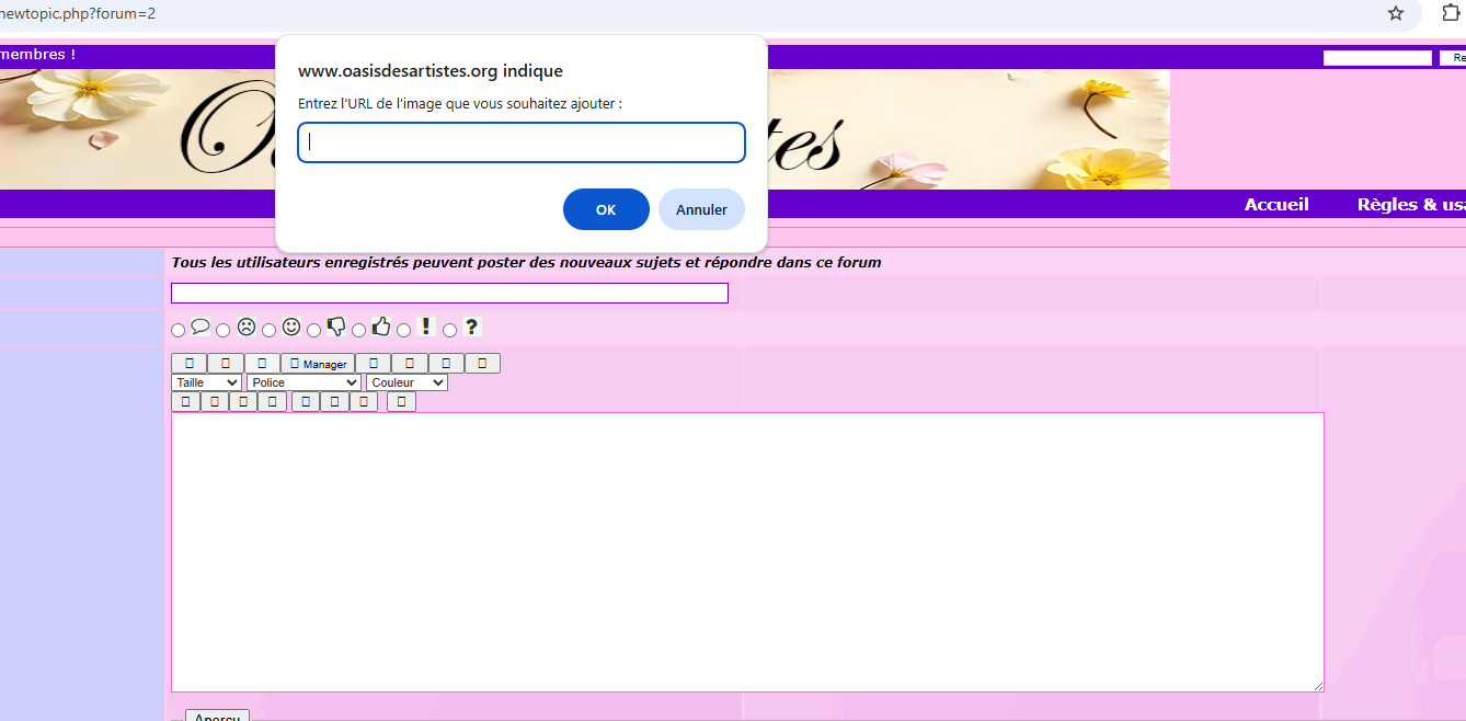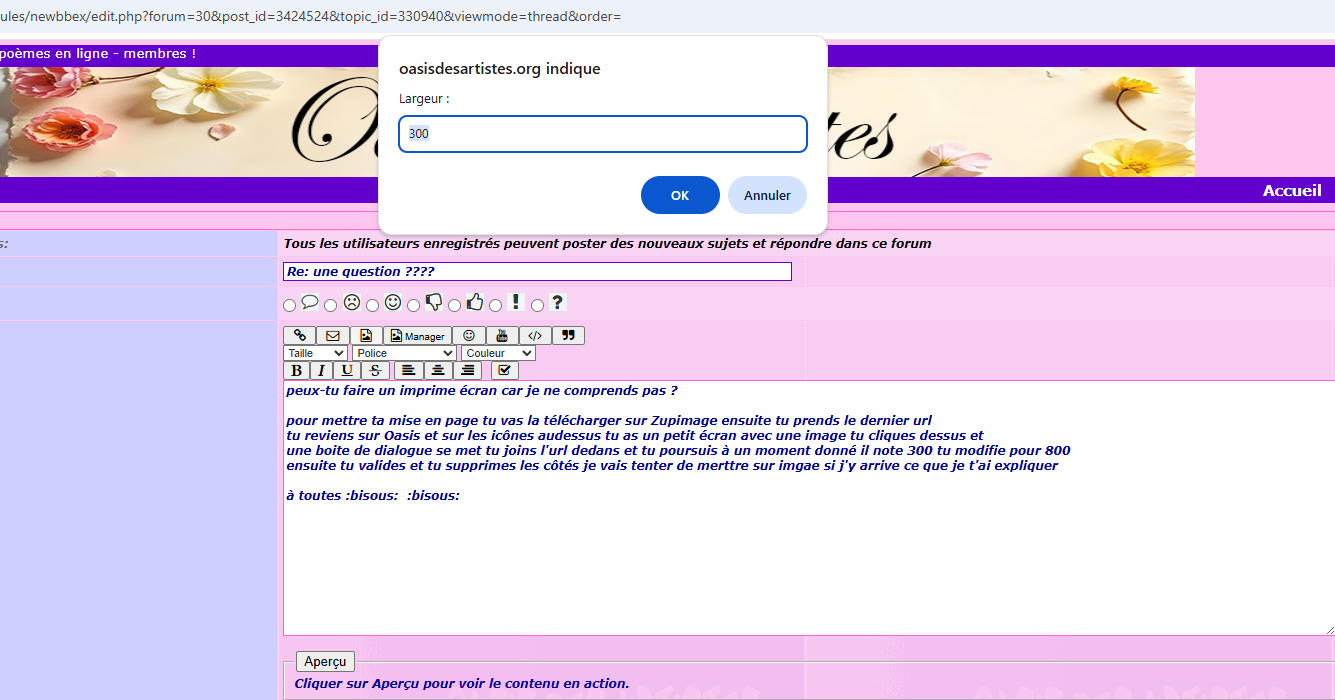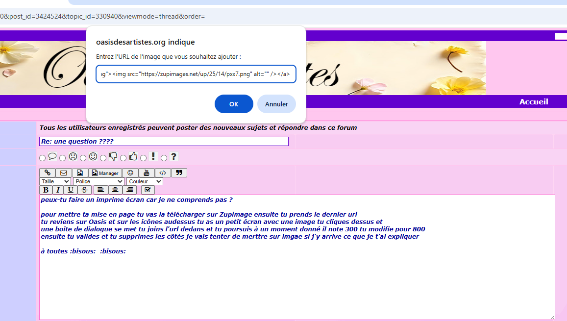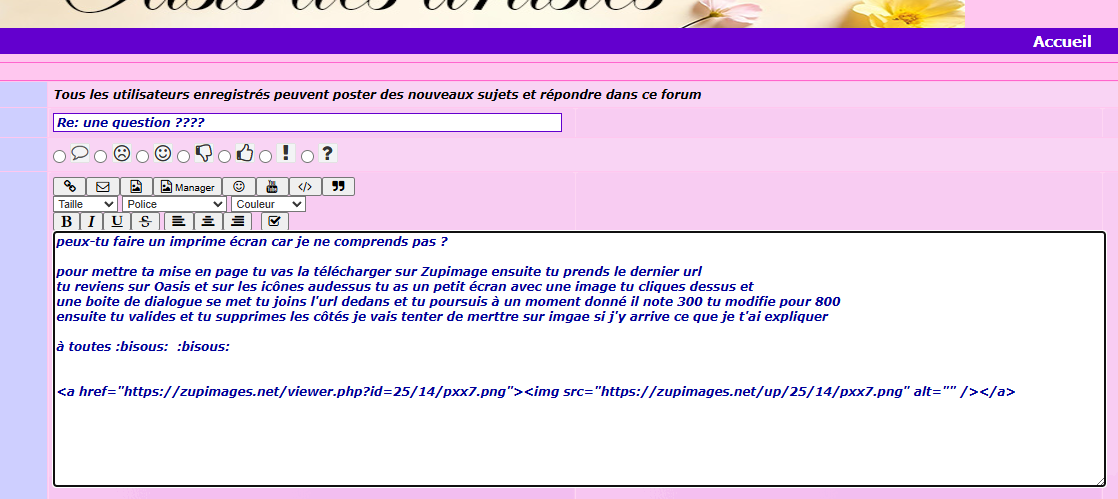 pour mettre ta mise en page tu vas la télécharger sur Zupimage ensuite tu prends le dernier url
